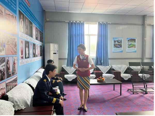 4.航空舱:航空舱实训室内部按照真实飞机的驾驶舱进行布局,该实训室分为不同的功能区,包括教学讲解区,乘务实训区,应急救护区等,在实训过程中学生必须按照操作流程和指导教师的要求进行操作,并石刻保持警觉以应对可能发生的突发情况。
