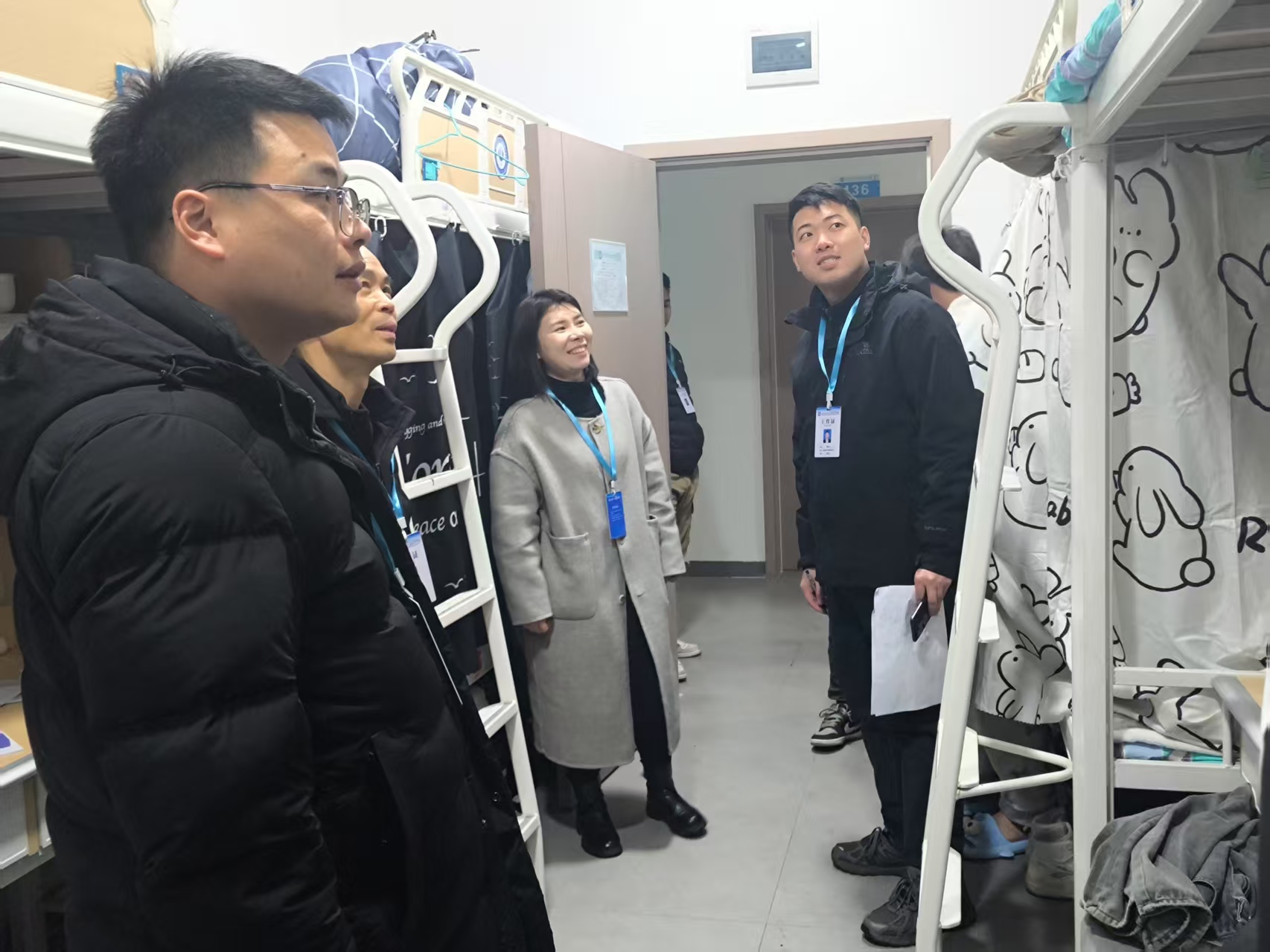 春夜走访,暖心行动彰显担当。3月5日至3月6日晚,学生处、保卫处及智慧交通与智能制造学院联合开展学生公寓走访活动。保卫处处长兼学生处副处长王珂、智慧交通与智能制造学院院长何异彬、党总支书记杨敏及辅导员深入D4和兰苑学生公寓,开展了“暖心安居工程”专项行动。在这初春料峭的夜色里,这支集合了教学管理、思政教育、安全保障等多部门力量的特别走访组,用脚步丈量责任,以行动诠释关怀。