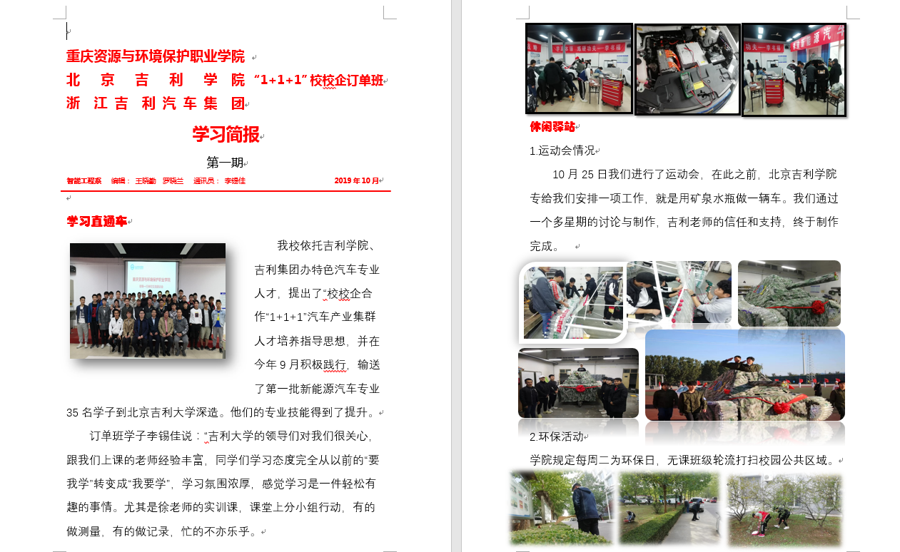 智能工程系新能源汽车技术专业“1+1+1”校校企订单班第一期学习简报
