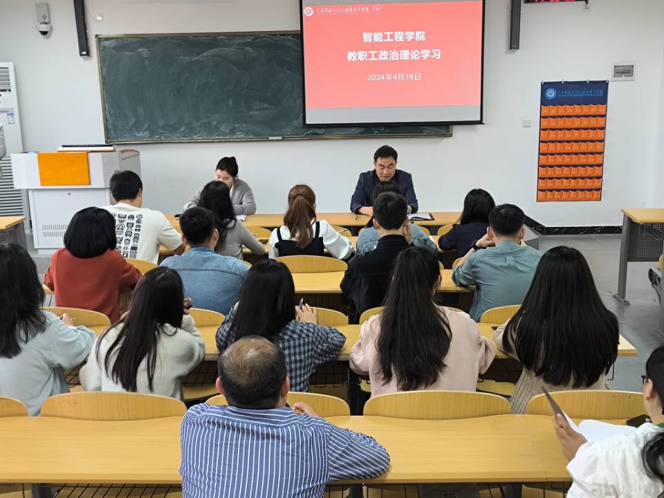 2024年4月16日下午14点,智能工程学院院长唐国坪在XJ410召开政治理论学习会议,全体教职工参加。会议伊始,全体教职工集中学习了“习近平总书记重要讲话精神和全国两会精神”、“中共中央办公厅印发《通知》在全党开展党纪学习教育”、“习近平:必须坚持人民至上”“习近平论坚持总体国家安全观”等文件中所包含的重要精神。会议强调,要认真贯彻党的教育方针,大力弘扬教育家精神,潜心教书育人、培根铸魂,持续