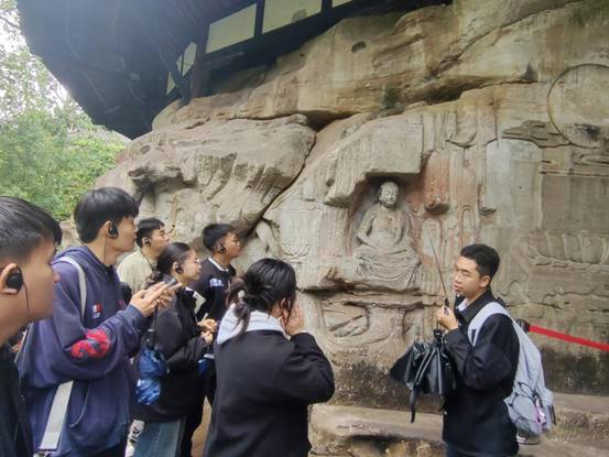 大足石刻是我国古代劳动人民的勤劳和智慧的结晶,历经了千百年的风雨依然栩栩如生,它不仅是宗教信仰的象征,更是中国古代文化的缩影,承载着中华民族深厚的历史底蕴。为弘扬伟大的五四精神,加强青年大学生的文化自信,2024年5月4日上午10点,智能工程学院团总支开展“走进世界文化遗产地——大足石刻”活动。同学们跟随着解说员的介绍,仿佛穿越时空,置身于千年前的历史长河。佛教作为一种外来宗教,在中国本土得到了