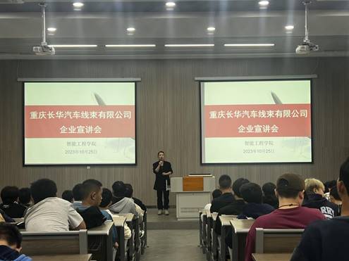 2023年10月25日,重庆资源环境保护职业学院智能工程学院有幸邀请到了重庆长华汽车线束有限公司来到校园,为同学们举办了一场别开生面的企业宣讲会。这次宣讲会旨在帮助同学们了解汽车线束行业的前沿市场及行业情况,为即将到来的实习和就业工作做好充分准备。重庆长华汽车线束有限公司于1996年03月26日成立,是一家专注于生产、销售汽车线束、抽接件、护套、电线以及提供售后服务的知名企业。此次宣讲会,公司代