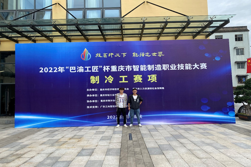 为了贯彻新职业教育法,弘扬劳动光荣、技能宝贵的职业精神,实现以赛促教、以赛促培、以赛促评、以赛促建的目标。9月27日我校智能工程学院选派了张亮、廖力锋两名同学,参加了由重庆市经济和信息化委员会、重庆市人力资源和社会保障局主办、重庆市轻工业学校承办的2022年“巴渝工匠”杯重庆市智能制造职业技能大赛制冷工赛项。
