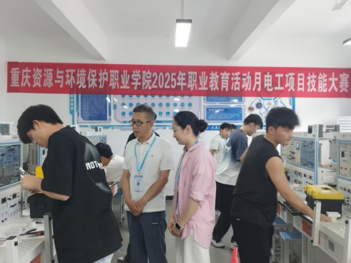 为深入贯彻落实国家职业教育精神,弘扬工匠精神,提升学生实践技能与职业素养,2025年6月4日,智慧交通与智能制造学院2025年职教活动月技能大赛电工项目、纯电动汽车故障诊断项目与汽车发动机拆装项目顺利开赛,比赛分别在智能制造实训基地XS215实训室、新能源汽车实训基地C104实训室进行,本次大赛吸引了学院新能源汽车检测与维修技术、汽车电子技术专业、智能机电技术和工业机器人专业的158名学生踊跃参与,现场气氛热烈,竞技氛围浓厚。学校校长李子存教授、学院院长何异彬教授及各教研室主任亲临赛场观摩指导,为参赛学子加油鼓劲。