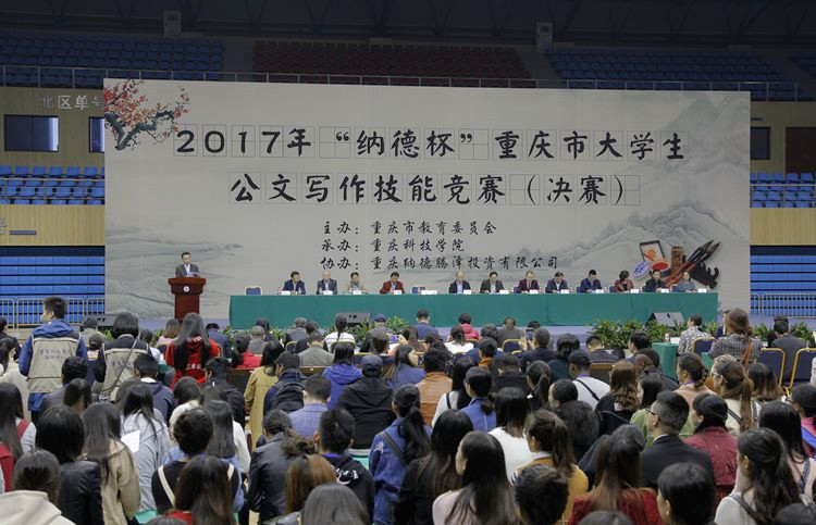 2017年“纳德杯”重庆市大学生公文写作技能竞赛决赛在重庆科技学院体育馆开幕。重庆市教委高教处处长蒋后强讲话并宣布决赛开幕,此次大赛共有55所高校参加,参赛高校师生代表1000余人参加开幕式,在参赛学生中,还有20多名外籍留学生。