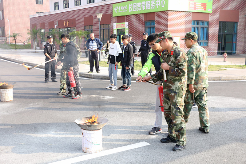 最后还向同学们展示了最常见的干粉灭火器的正确使用,其中有许多热情的同学上台学习并实际操作了一番。