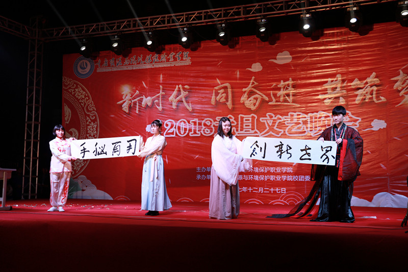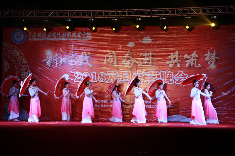 12月27日晚上,为欢庆元旦共迎2018,由学院校团委、学生会承办的以“新时代、同奋进、共筑梦”为主题的晚会在学院办公楼前广场隆重举行。