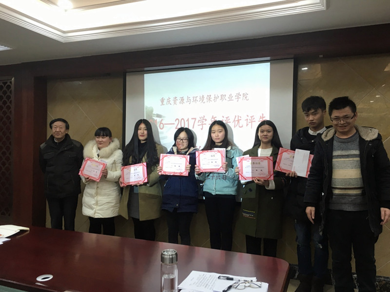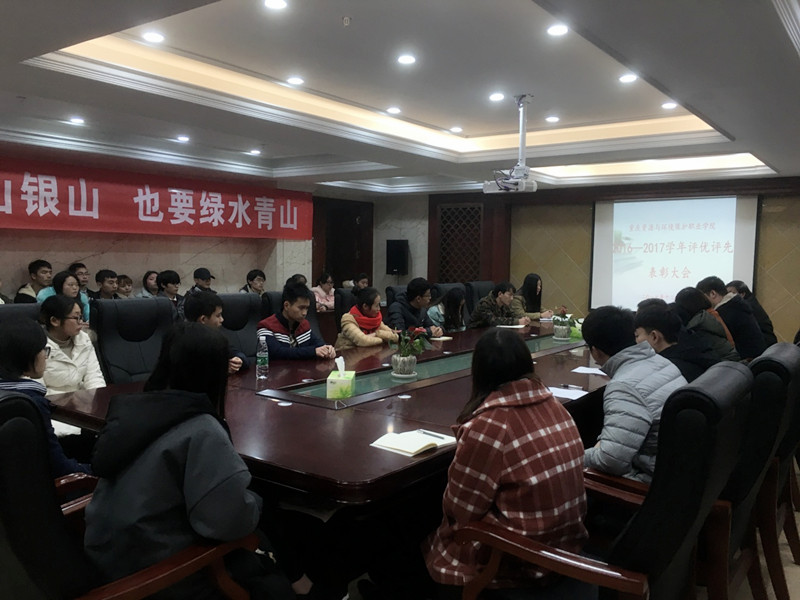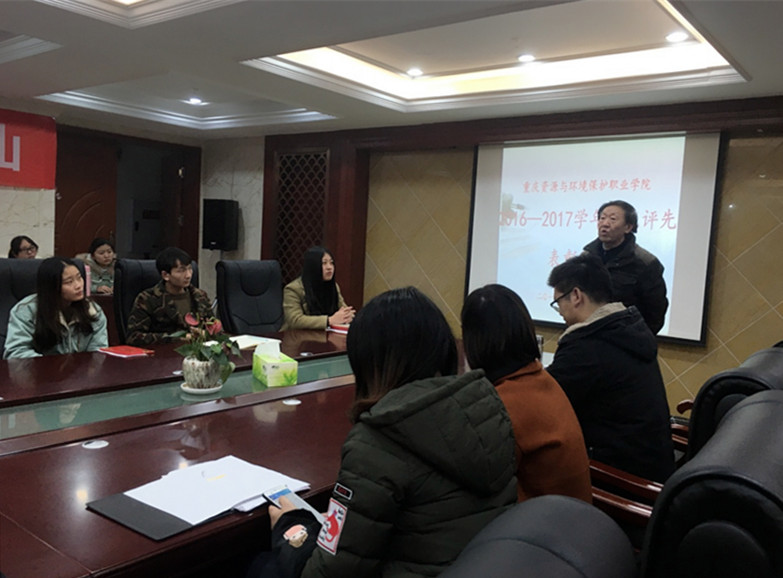 2017年12月26日晚上,重庆资源与环境保护职业学院2016—2017学年评优评先表彰大会在办公楼三楼会议室举行,学院姚木远书记、学生处龙行友老师及各系辅导员等出席了本次表彰大会。受表彰的同学及各班学生代表参加了会议。