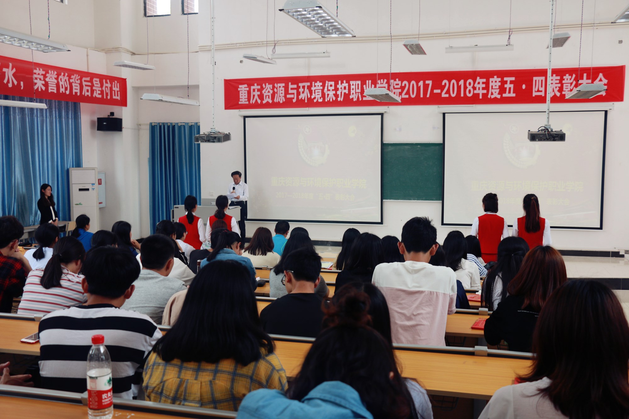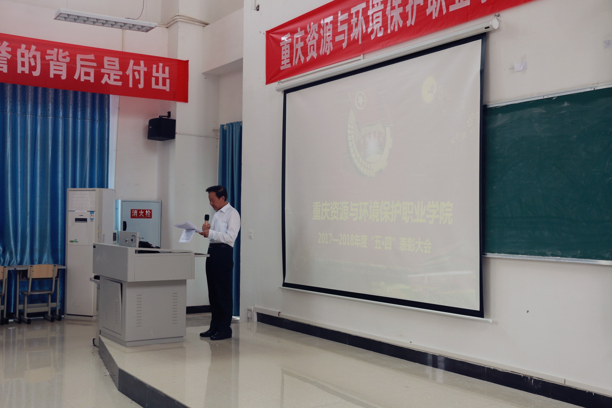 为深入学习贯彻党的十九大精神,切实增强基层团组织凝聚力,不断推进学院共青团工作,在五四青年节到来之际表彰先进、树立典范,2018年5月4日中午,由校团委主办的重庆资源与环境保护职业学院 “五四”青年节表彰大会在S113阶梯教室举行。学院党组织书记姚木远、学院教务处处长郝位军、学生处副处长龙行友参加表彰大会。本次大会由学院团委副书记刘静主持。