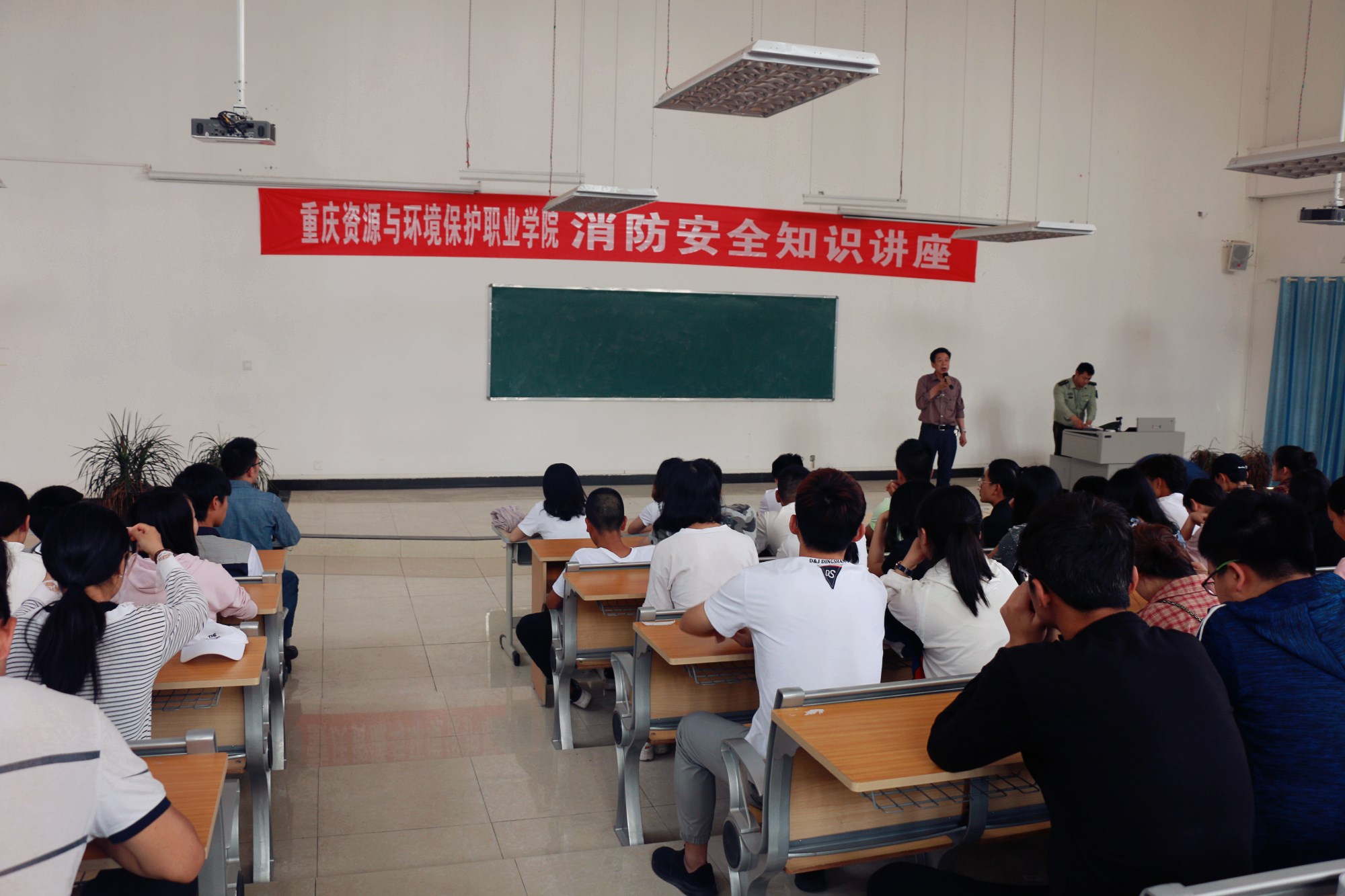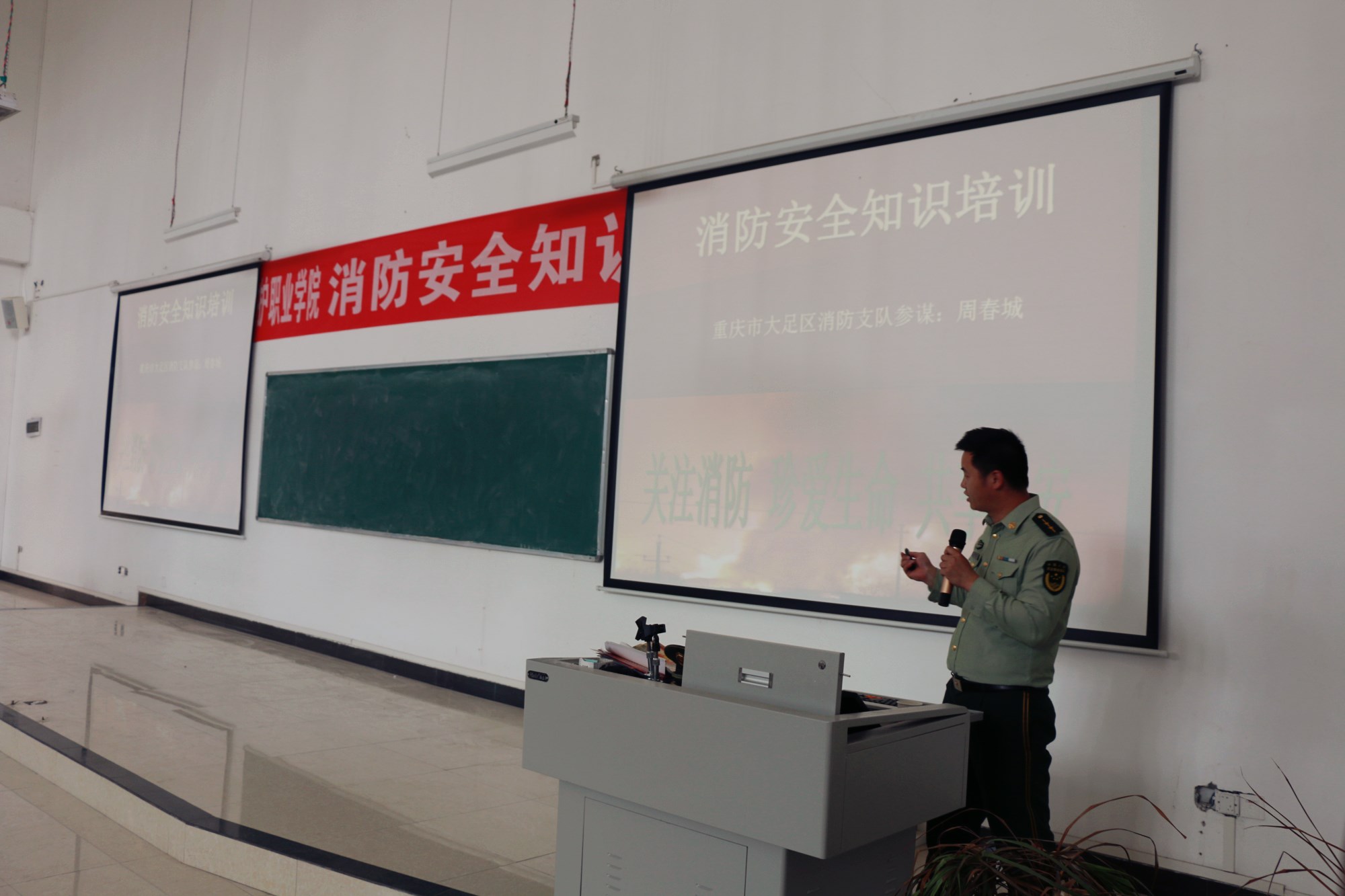 为进一步做好校园消防安全工作 ,加强消防安全宣传教育。5月2日下午,大足区消防支队在资环学院J112阶梯教室举办了一场消防安全知识讲座,讲座由周春城参谋主讲。
