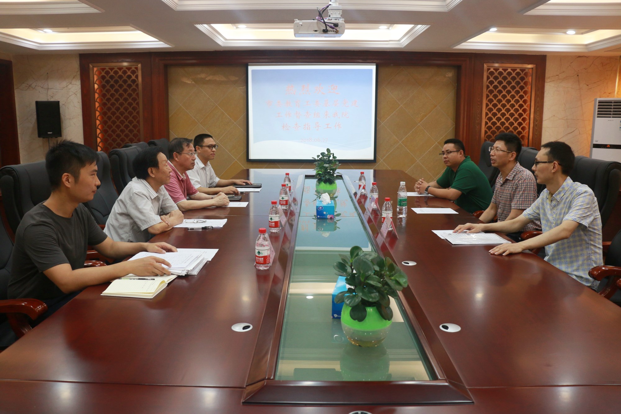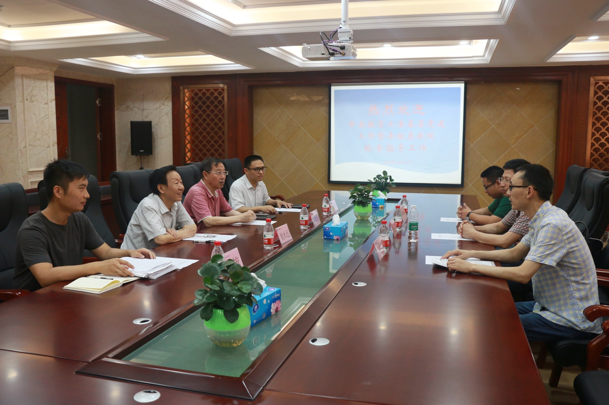2018年6月27日上午,市委教育工委基层党建第五督查组成员一行三人在组长、重庆水利电力职业技术学院组织部部长潘远科的带领下,到我校开展党建督查工作。学院领导姚木远书记、黄耀五院长及党总支委员参与了此次督查工作会。