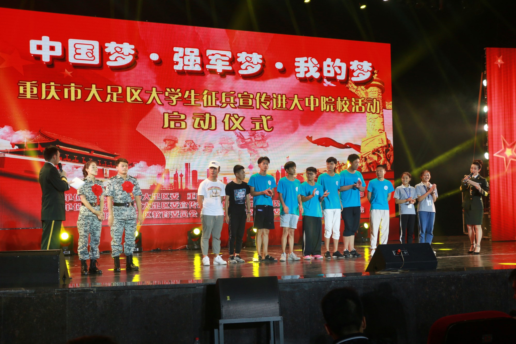 2018年6月27日,由大足区委、区人民政府和大足区人民武装部主办,大足区委宣传部,区政府征兵办公室协办的重庆市大足区大学生征兵宣传进大中院校活动启动仪式在大足区文化艺术中心举行。
