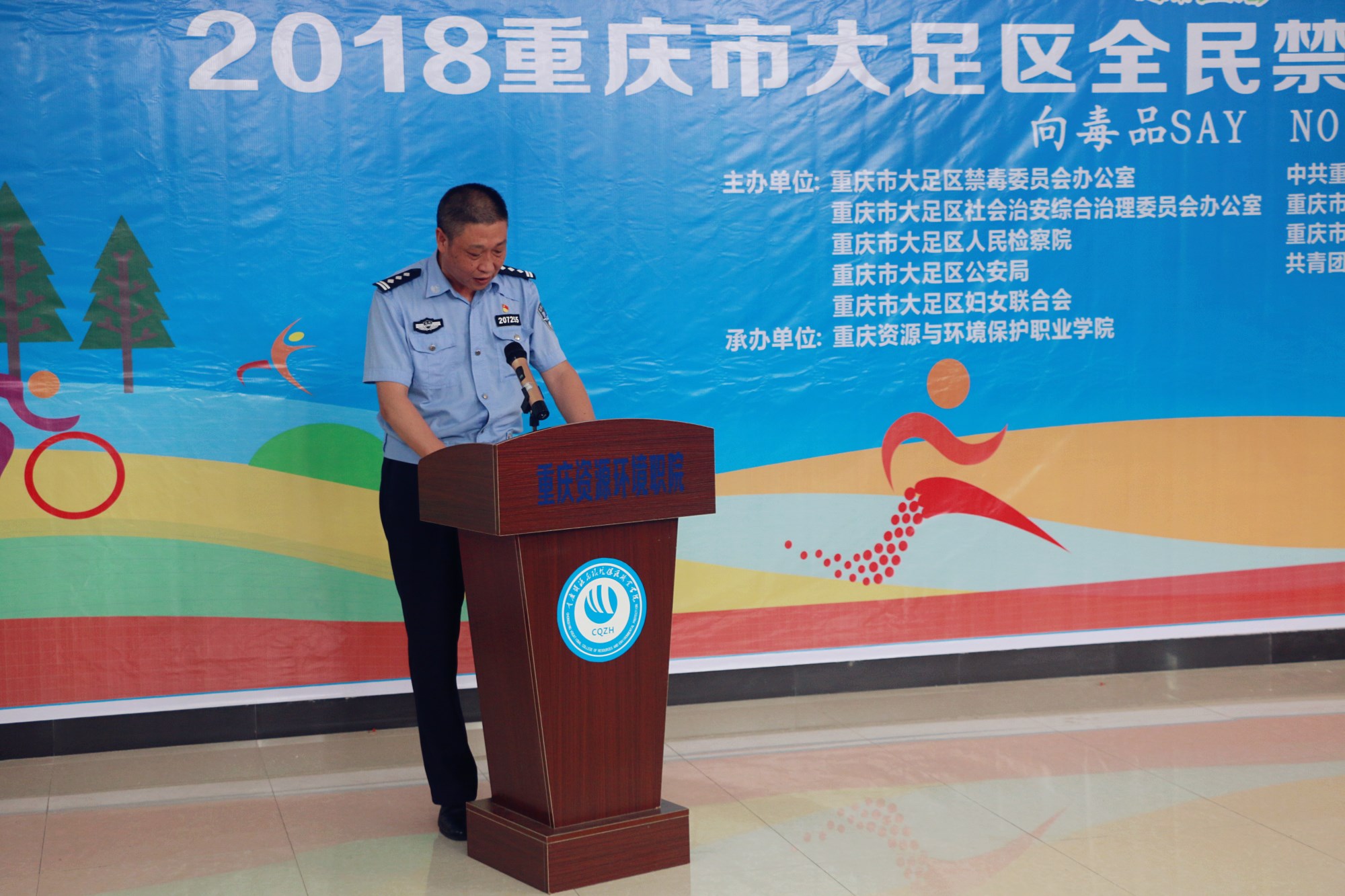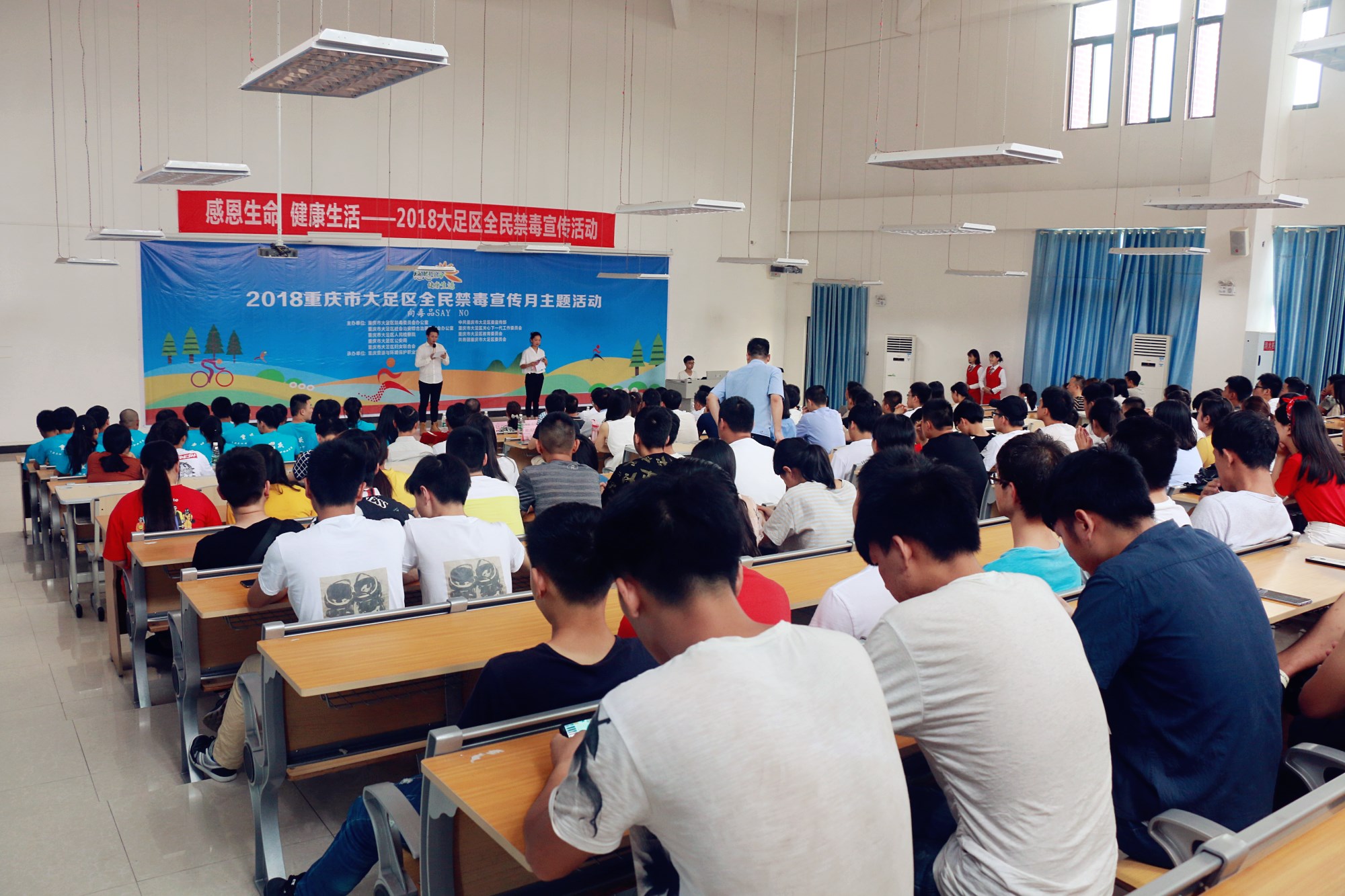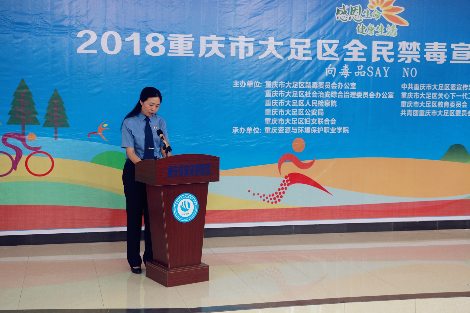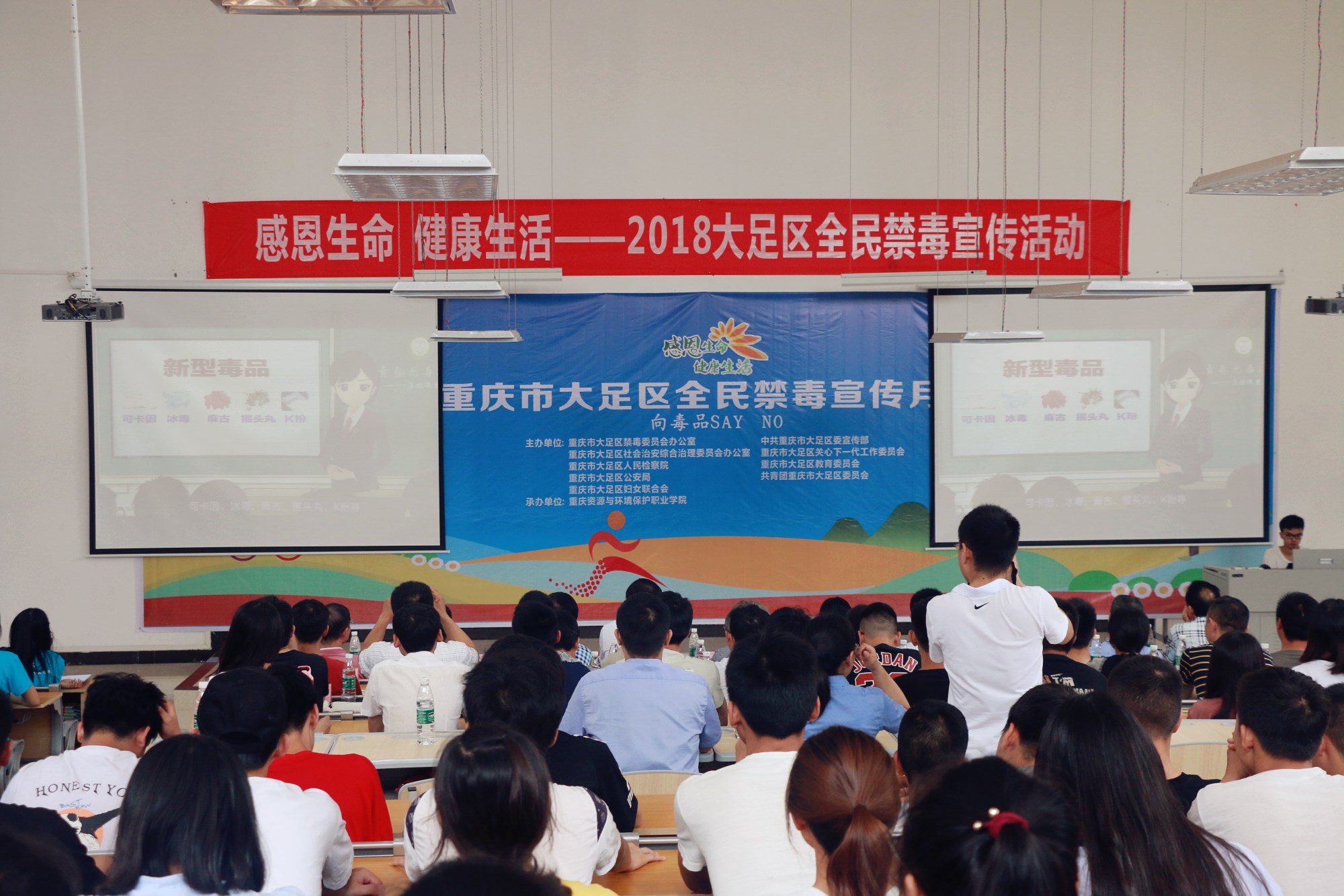 为深入贯彻党的十九大精神,切实落实中央和市委、市政府关于加强禁毒工作决策部署,根据市禁毒委对2018年禁毒宣传教育工作的部署要求, 2018年6月26日,在国际6.26禁毒日当天,“感恩生命、健康生活—2018大足区全民禁毒宣传活动”在重庆资源与环境保护职业学院开展。