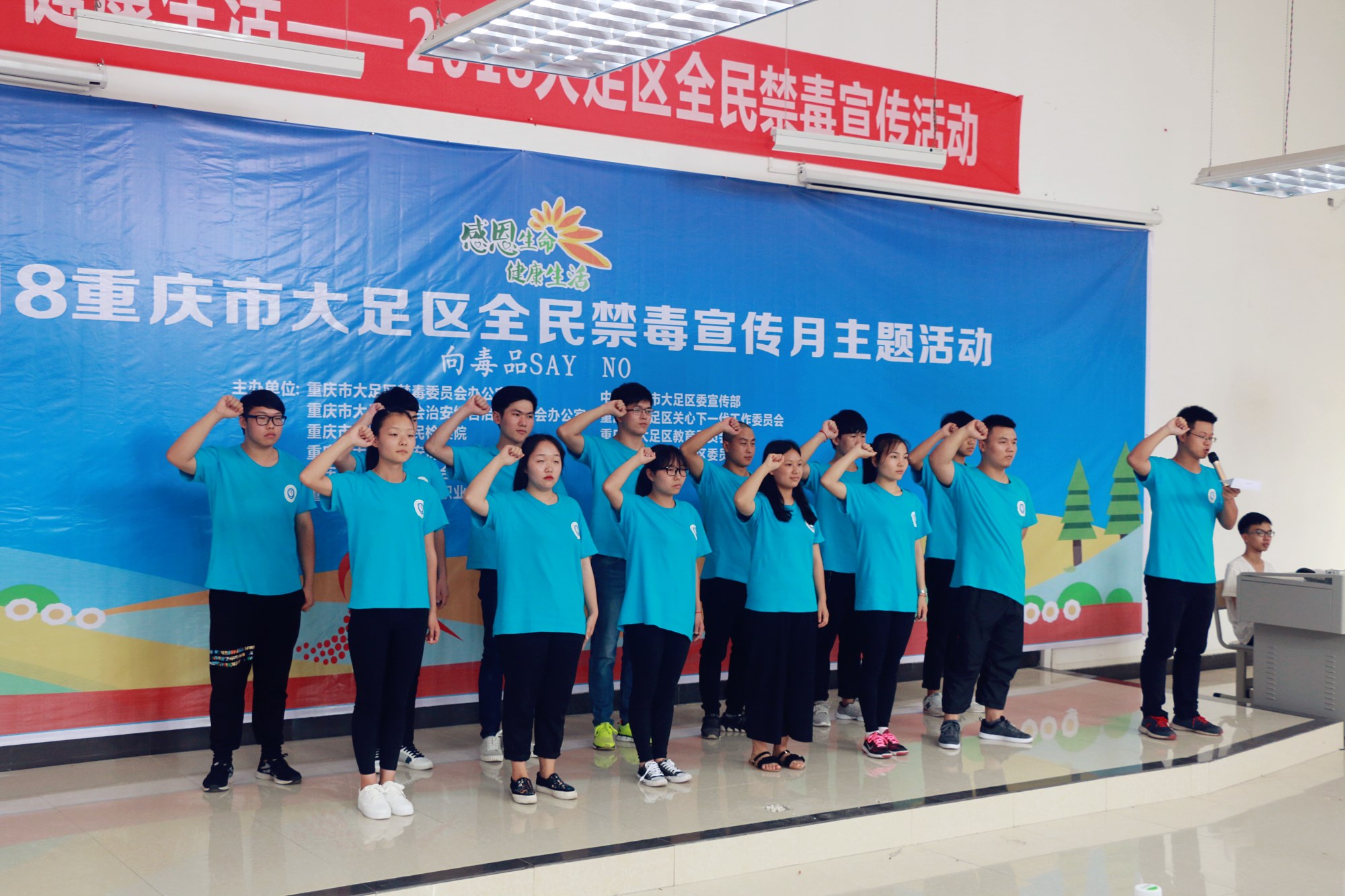 重庆资环学院禁毒志愿者还在活动上宣誓:“我是中华民族的儿女,不忘耻辱,坚决与毒魔作斗争,珍爱生命,拒绝毒品,保证不吸毒、不贩毒、不制毒、不种毒,积极检举吸贩毒行为,自觉抵御毒品的侵蚀,积极投身于禁毒斗争行列,我将履行禁毒誓言,为国家禁毒事业作出自己应有的贡献。”