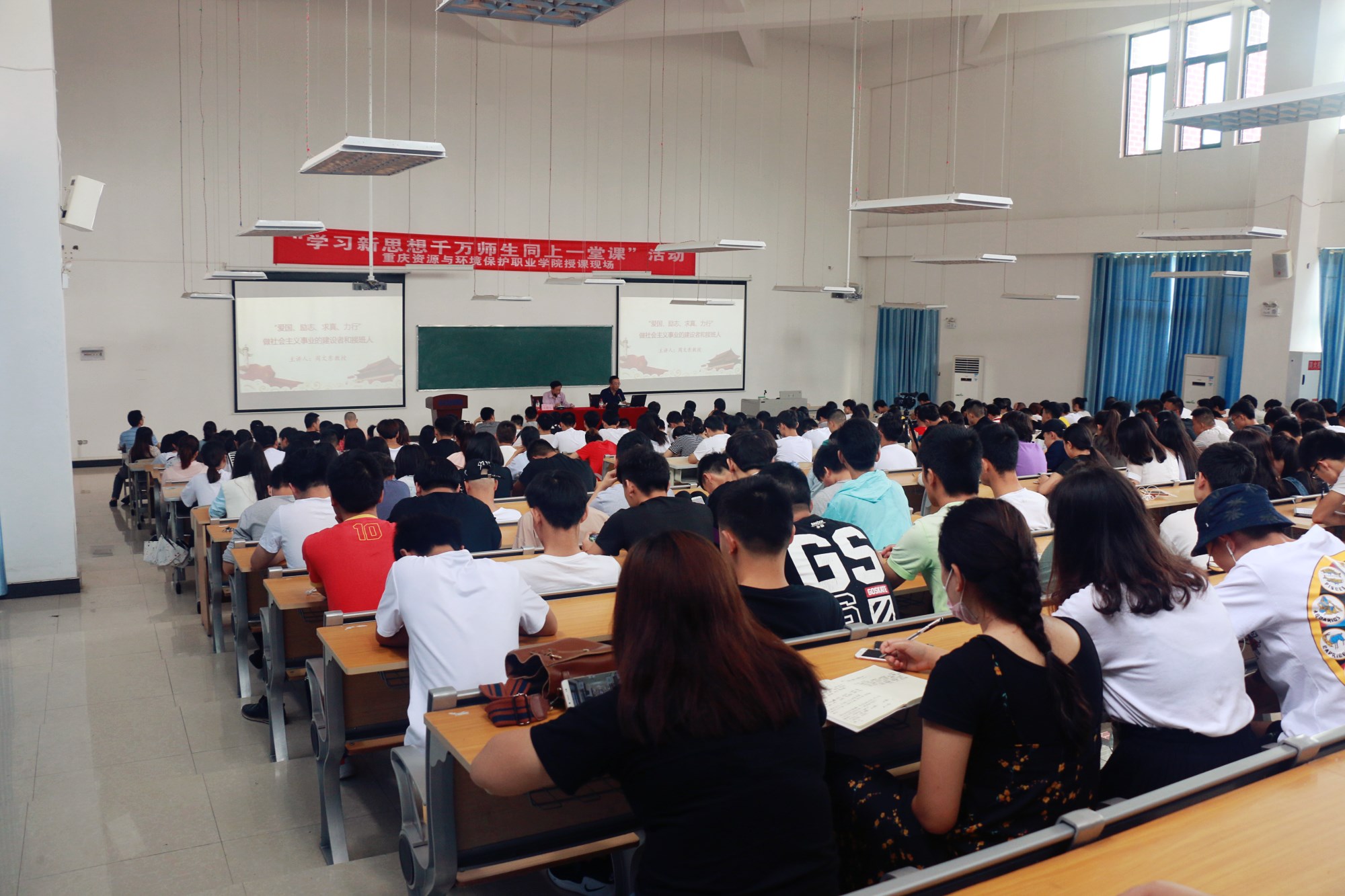 6月20日下午,重庆市高校“学习新思想千万师生同上一堂课”讲师团成员,重庆文理学院宣传部部长周文东以《爱国、励志、求真、力行做社会主义事业的建设者和接班人》为题在我校教学楼阶梯教室授课,700余学生参加聆听。会议由姚木远书记主持。