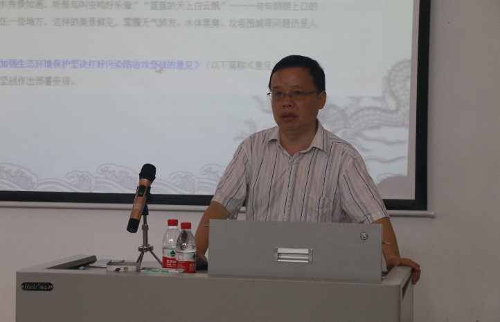 2018年6月28日上午10:20时,在教学楼J112阶梯教室,我院特邀西南大学资源环境学院环境科学与工程系主任陈玉成教授来校开展《低碳邂逅节能减排,绿色相遇生态文明》专题讲座。讲座由环境工程系副主任邹小南主持,教务处处长郝卫军、环工系全体无课教师、无工作安排辅导员以及相关专业学生参加了本次讲座。