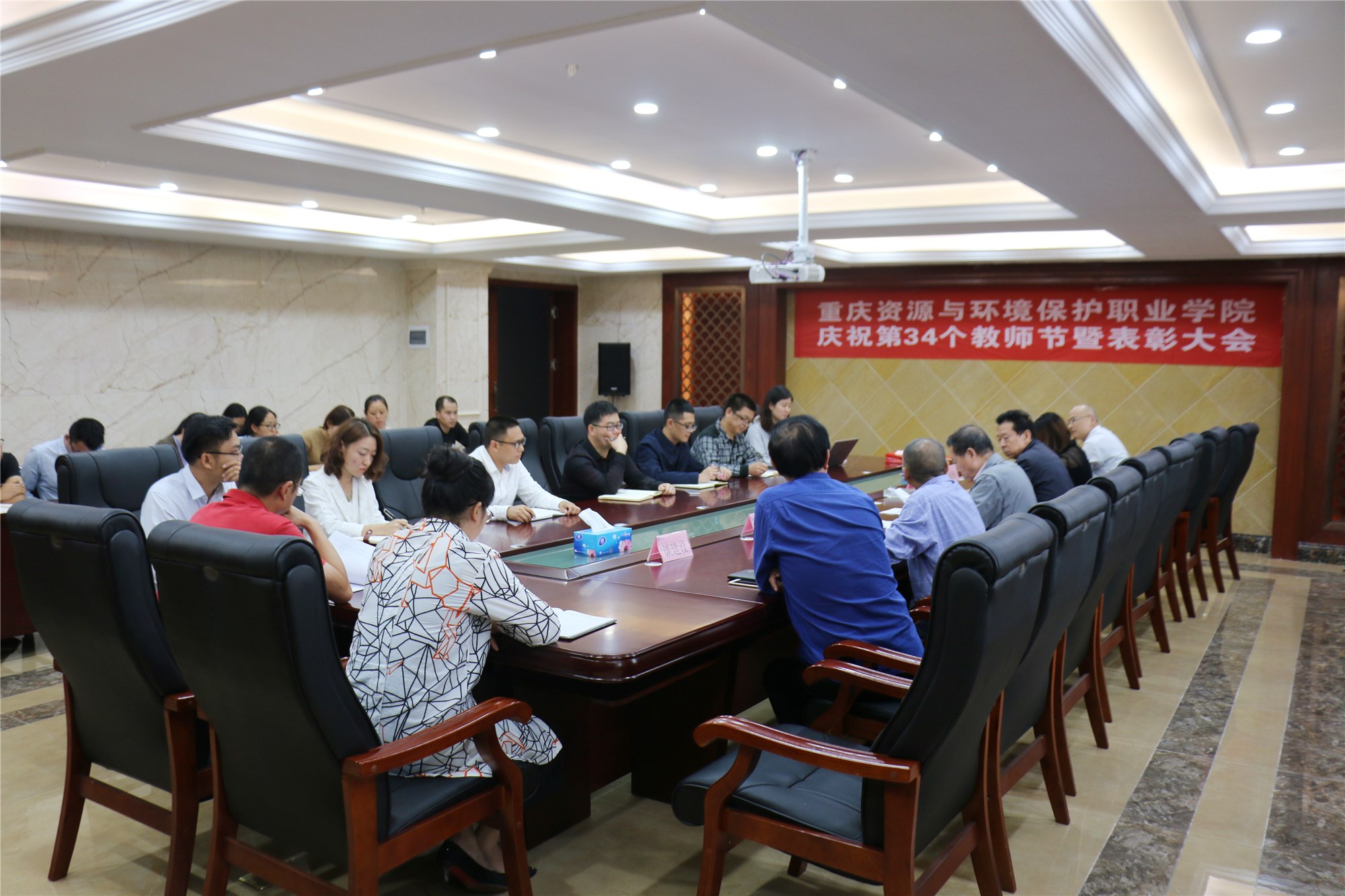 9月10日下午,重庆资源与环境保护职业学院在办公楼三楼会议室召开庆祝第三十四个教师节暨表彰大会,学校全体校领导、受表彰人员、中层干部参加大会,大会由院长黄耀五主持。