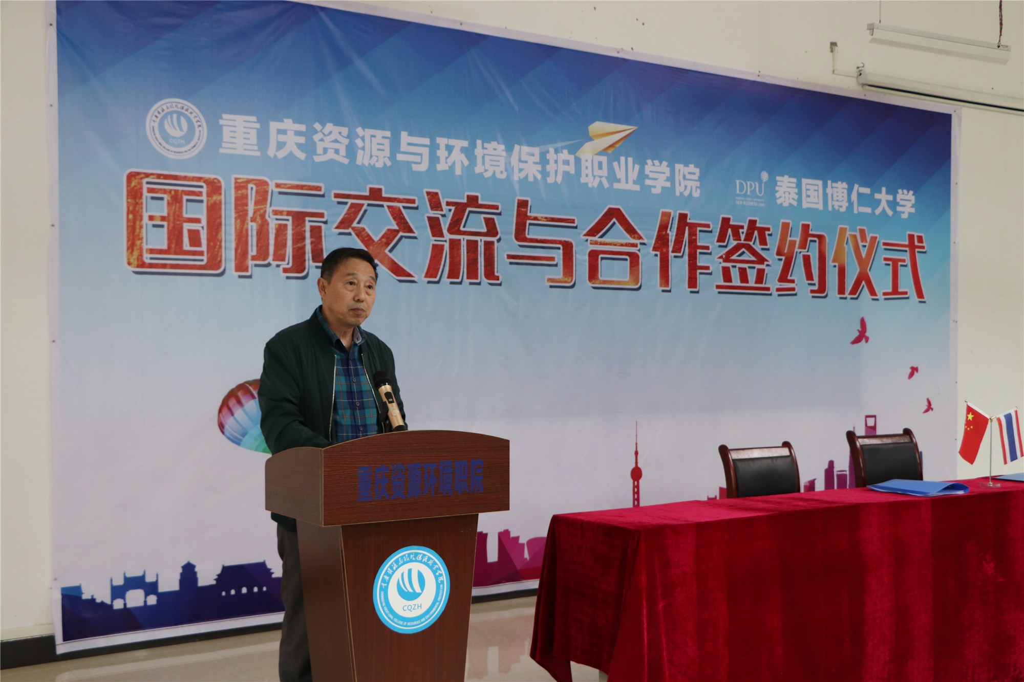 首先,黄耀五院长代表学院致辞。他表示,为了深化“一带一路”教育行动,发挥“一带一路”中泰职业教育联盟等平台作用,大力支持优秀学生到世界高水平大学和国际组织学习实习;加快海外高层次人才创新创业基地建设,引导和促进优秀留学人员来渝工作创业。这次能与泰国博仁大学合作,能够为学生学习深造提供多样化的国际教育服务,发挥各自的办学优势,促进学校发展,共育优秀人才。