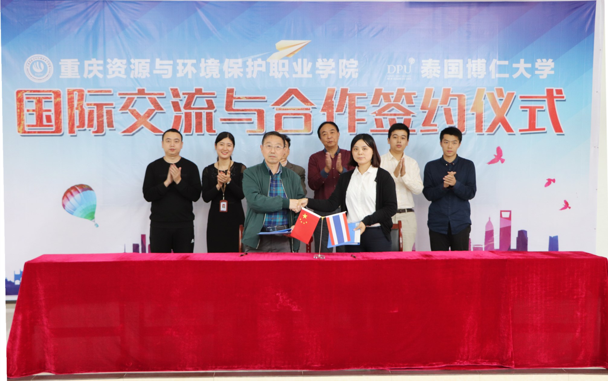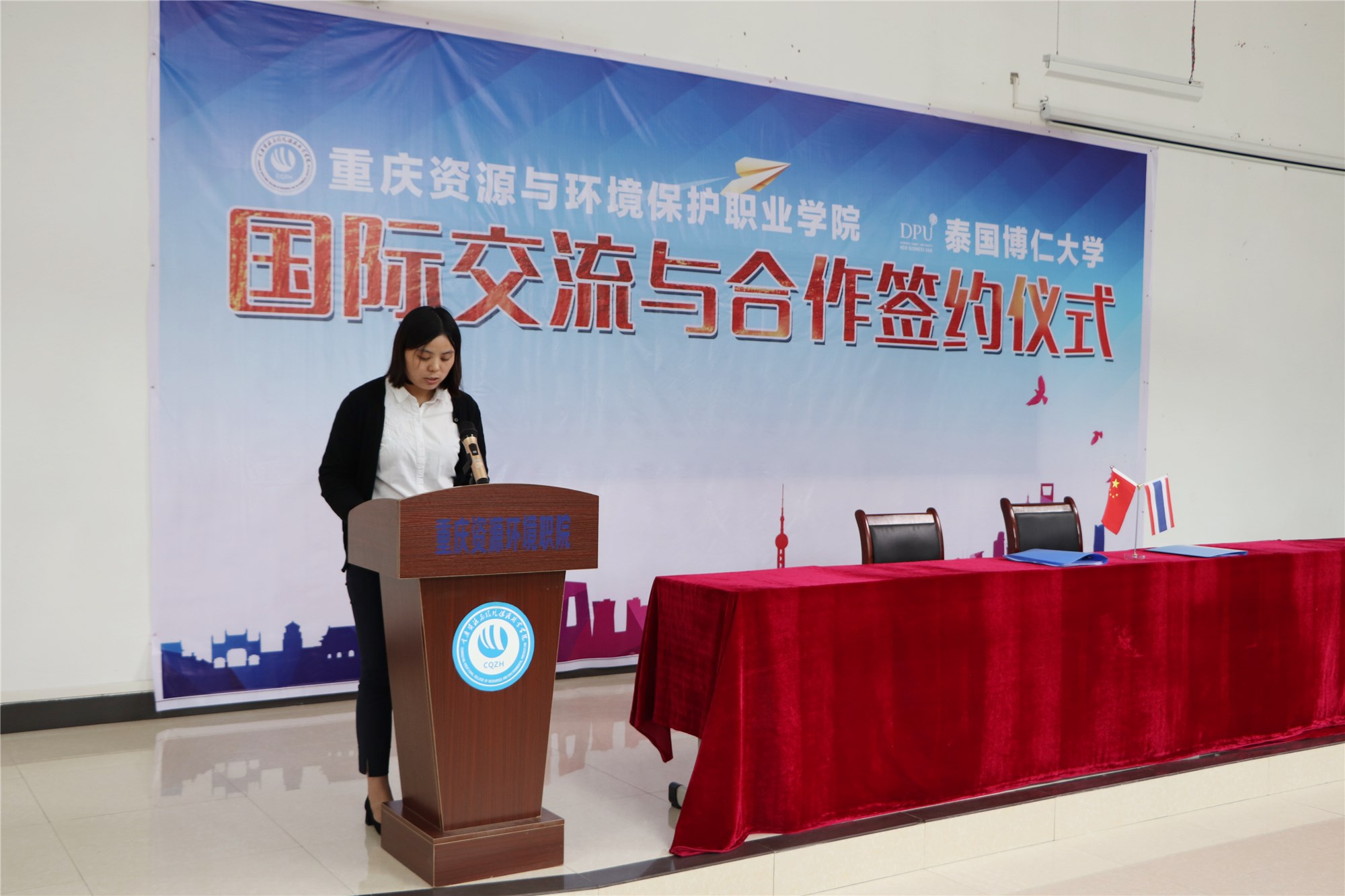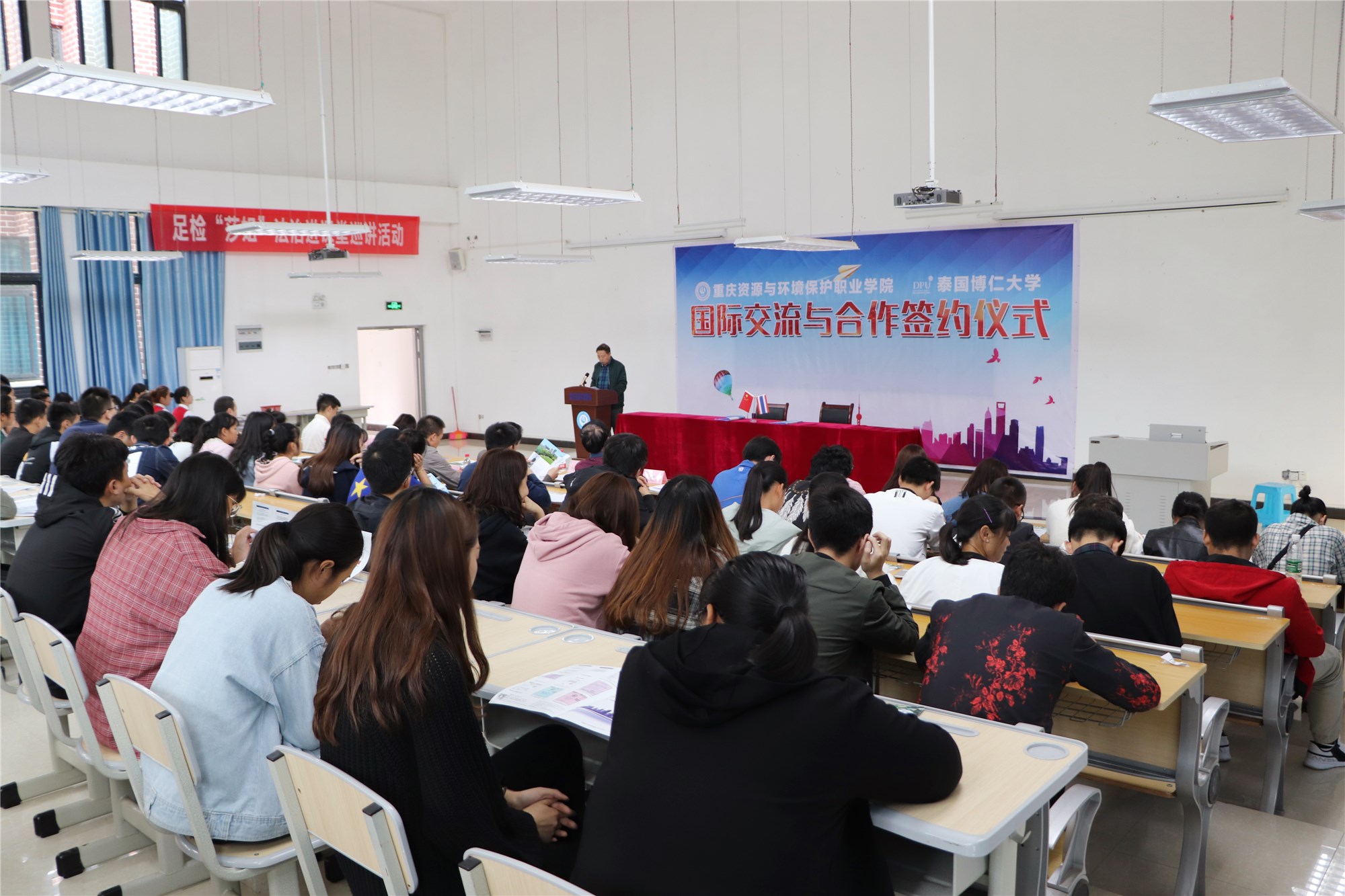2018年9月28日下午,学院与泰国博仁大学在阶梯教室J112举行国际交流合作签约仪式。
