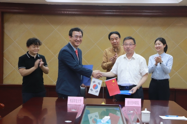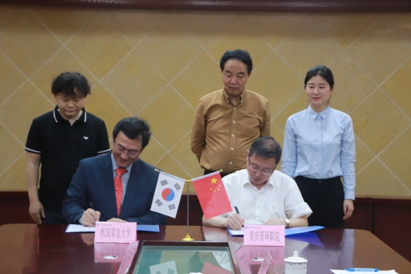 最后,韩国草堂大学与资环学院签订了国际教育交流备忘录,双方合影留念。