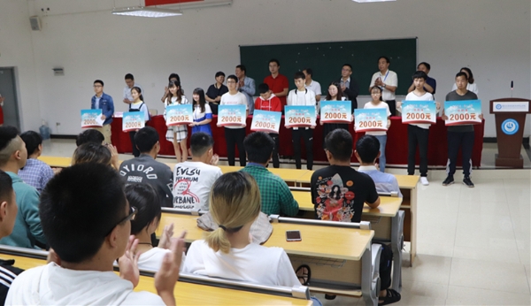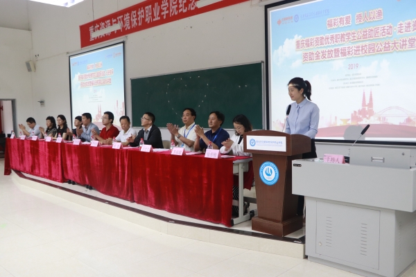 习近平总书记在十九大报告提出:建设知识型、技能型、创新型劳动者大军,弘扬劳模精神和工匠精神,营造劳动光荣的社会风尚和精益求精的敬业风气。为深入贯彻习近平总书记的号召,2019年5月27日上午,“福彩有爱•授人以渔”——2019重庆福彩资助优秀职教学生公益助匠活动、资助金发放暨福彩进校园公益大讲堂之重庆资源与环境保护职业学院站在学校教学楼J112教室隆重举行。