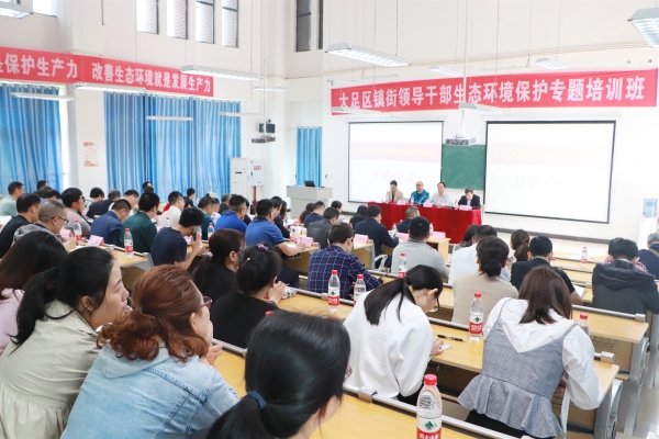 为统筹做好2019年大足区干部教育培训工作,切实推动党员干部学懂弄通做实习近平新时代中国特色社会主义思想,着力培养选拔忠诚干净担当的高素质干部,由大足区委组织部、大足区生态环境局主办、由我院承办的生态环境保护专题培训班,于2019年5月22日9点正式在我院S113阶梯教室开班,为期培训共两天。大足区环保局、大足区农业农村委、大足区水利局、大足区林业局、大足区住建委、大足区交通局、大足区城管局、大足区自然资源局、大足区畜牧渔业发展中心及各镇街分管领导共60余人参加培训学习。
