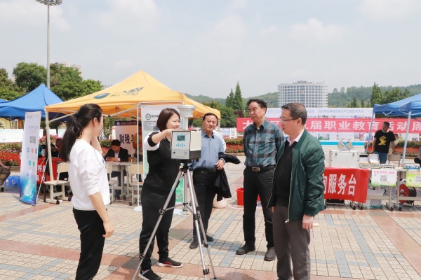 我院作为本次主办单位,学校领导相当重视,结合我院实际,利用活动周契机积极宣传职业教育发展情况及我院的办学特色,开展了一系列工作和活动,将提前制作好的各系部的宣传展板展示在活动现场,我院生态环境系、智能工程系、公共管理系和环境艺术系的部分老师和同学在活动现场设立便民服务区,展示并宣传自己系部的专业特色,吸引了不少市民驻足观看体验。学院黄耀五院长,谈建设和李福超副院长也亲自到现场观看体验。