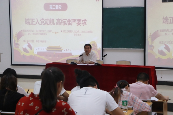开班仪式后,黄耀五院长做了题为《不忘初心,牢记使命》的首场讲座报告。报告第一部分从为什么要开展“不忘初心、牢记使命”主题教育和主题教育的重大意义、总要求、重点等四个方面讲授;为了让学员们更深刻地反思自身的入党动机,黄耀五院长向学员作了报告的第二部分讲述“端正入党动机,高标准严要求”,从提高思想认识,树立正确的入党动机,充分发挥模范带头作用,端正学习态度,保证学有所获等内容讲授。并强调,入党积极分子仅仅靠本次培训是远远不够的,更重要的是要注重平时的学习,要将这次培训作为新的起点,当作今后进一步加强学习、自觉学习的开端。一方面,继续学习党的基本知识,进一步掌握党的基本理论;另一方面,还要在今后的工作和学习中,按照党员标准,严格要求自己,加强党性修养和锻炼,树立高尚的道德情操。