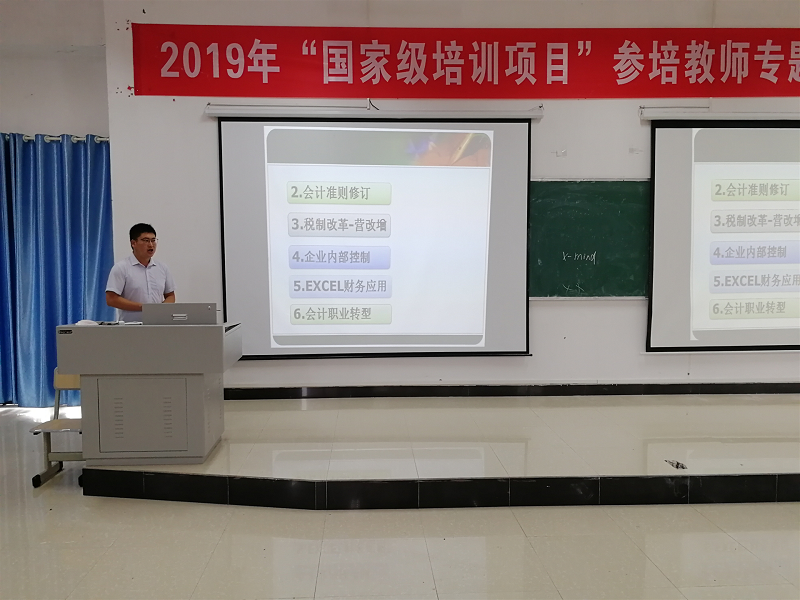 王世忠老师主要对会计专业培训学习进行了分享交流。他从师德学习、专业学习、实践学习等三个方面讲述了自己的所见、所思,强调教师要有理想信念、有道德情操、有扎实学识、有仁爱之心,树立正确的三观,从而更好的培养学生,专业层面要根据专业所需与时俱进,注重实践学习。