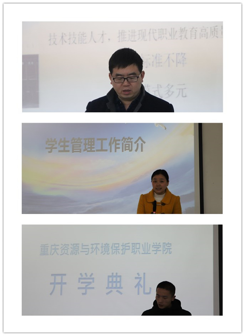 在典礼上黄校长对我校情况进行了介绍,就各专业进行了详细的讲解。黄校长表示:国务院关于高职扩招百万既是民生工程,更是政治任务。2019感恩国家重礼,同乘扩招东风,他很感谢各位同学选择了资环职院,希望在座的各位同学,能够珍惜国家给予的福利,重视此次学习的机会,适应不同的教育教学的学习方式,树立现代学习理念,坚持学习的自主性、开放性和可持续性,促进自身专业水平的提高和全面素质的发展,顺利完成学业。