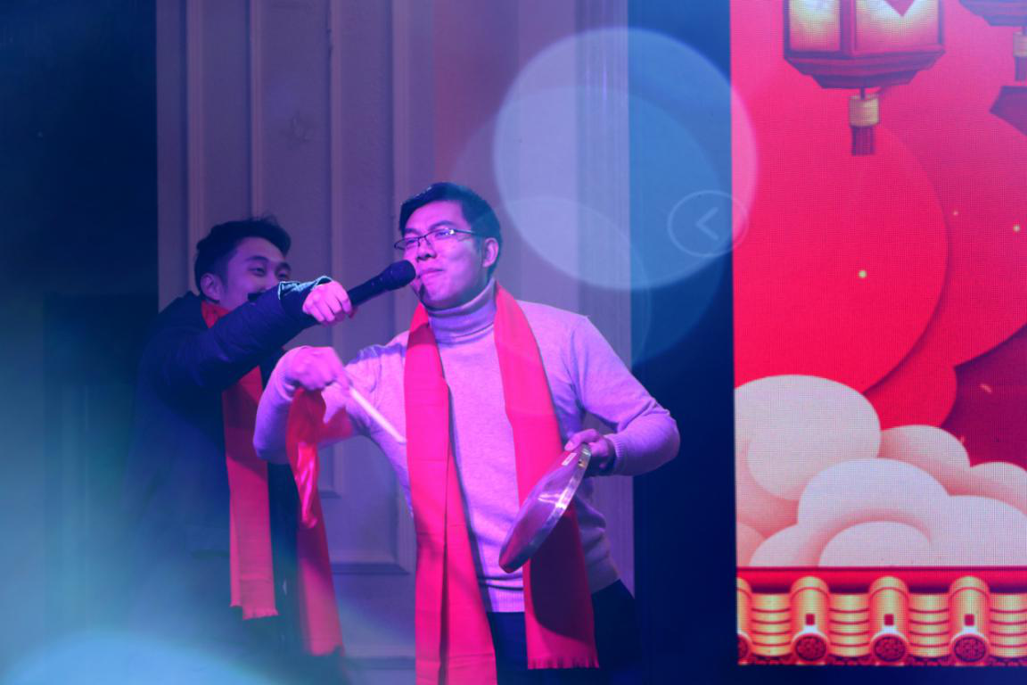 团拜会现场,机关部门、系(部)纷纷献上精心准备的节目。《同一首歌》《三句半》《最好的未来》表达了对学院的热爱和对2020年美好生活的憧憬;《逐梦资环》《舞鼠闹新春》《拍拍操》《新春送祝福》表达了资环人拼搏,奋斗,不懈努力的资环精神。《拍拍操》充满活力的表演一度将气氛推向高潮。
