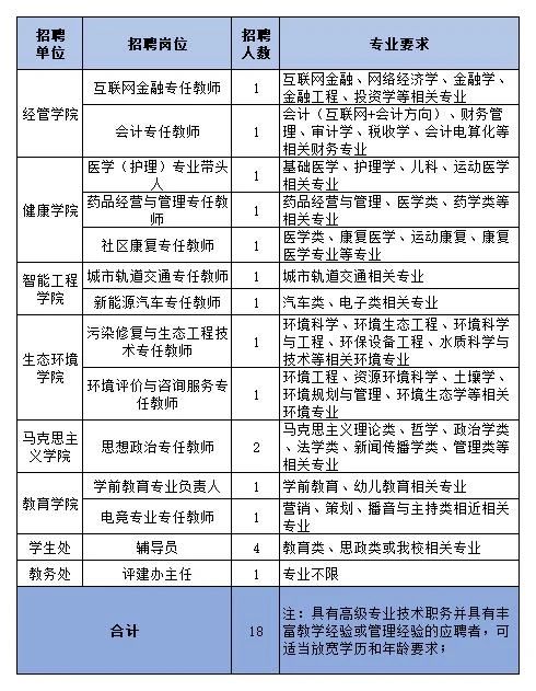 详见《重庆资源与环境保护职业学院公开招聘岗位一览表》(见末尾)