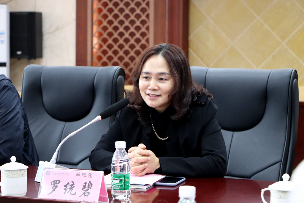 北碚职教中心校长罗统碧对北碚职教中心的学生人数、开设专业、校园建设等方面进行介绍,同时提到资源环境学院很年轻,但是非常有活力;专业有特色,也非常有内涵。她希望接下来两校能大手牵小手,在专业建设、队伍建设以及学生体验等方面能有更多的合作。