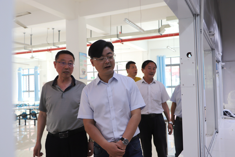 印国建一行仔细检查校园环境消杀、防控物资储备、学生公寓管理及食堂食品安全卫生等工作,并与学校负责人交流交谈,听取疫情防控和开学复课的准备情况。其中重点强调务必保证学生的伙食健康卫生营养高。
