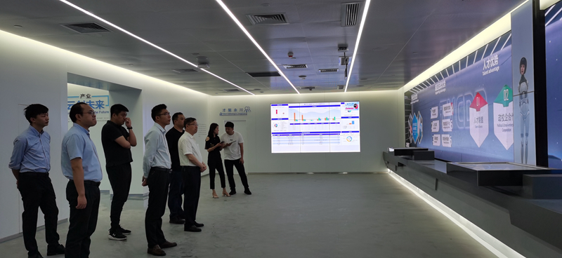 在大数据产业园区副主任蒋兆勇和达瓦未来影像科技有限公司总经理夏斯宇等负责人的陪同下,一行人进入大数据产业园区参观。园区中涵盖各类大数据技术的应用:数字孪生城市系统控制大厅,模拟城市建设;数字农品大数据中心,搭建全国性农产品综合交易电商平台;服务公社,打造“政务服务+数据智能+新零售”的大数据平台等。此外,重庆市大数据产业人才公共服务平台对整个重庆各院校大数据专业的开设及大数据行业企业用工情况等做出详细展示。通过此次参观考察,全面地了解到了大数据行业的发展前景。同时,对我校大数据相关专业的发展问题做出进一步的思考。