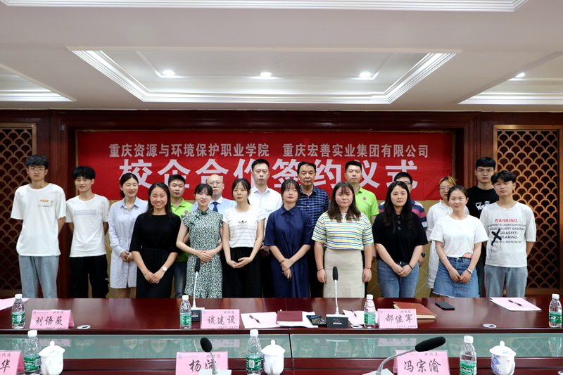 为响应国家关于加强学校和企业的号召,充分发挥学校和企业方优势,我校与宏善集团有限公司签订了校企合作协议及人才培养基地授牌,学校还聘请了重庆宏善集团有限公司的杨沛作为客座教师,并为他颁发了聘书。最后,参加签约仪式的领导和师生代表进行了合影留恋。