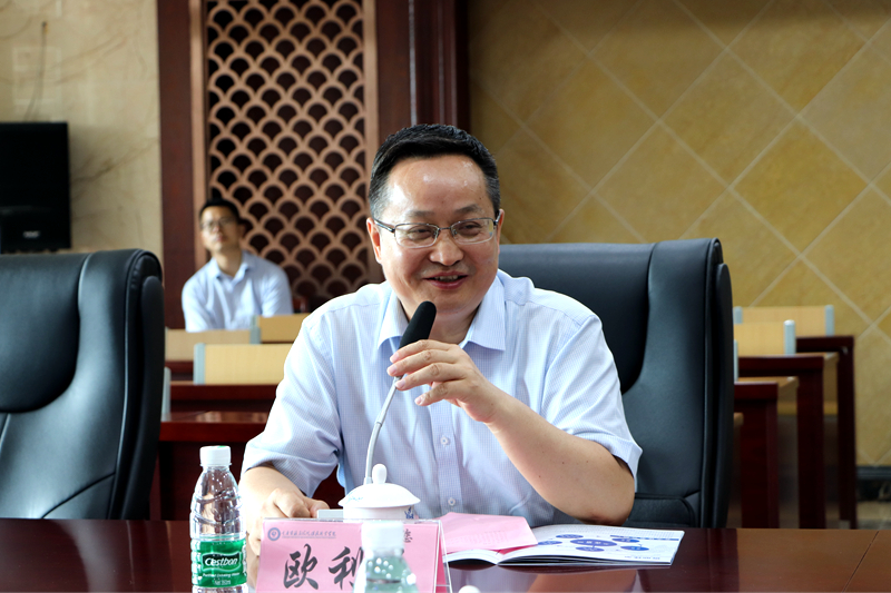 铜梁职教中心党委书记欧利民进行讲话。首先表示感谢,感谢胡董事长对铜梁职教中心的热情邀请和盛情接待,同时也感谢李会长的牵线搭桥,让铜梁职教中心与资环学院紧紧联系在一起。其次希望与资环学院合作,为更多的学生找到升学的途径。