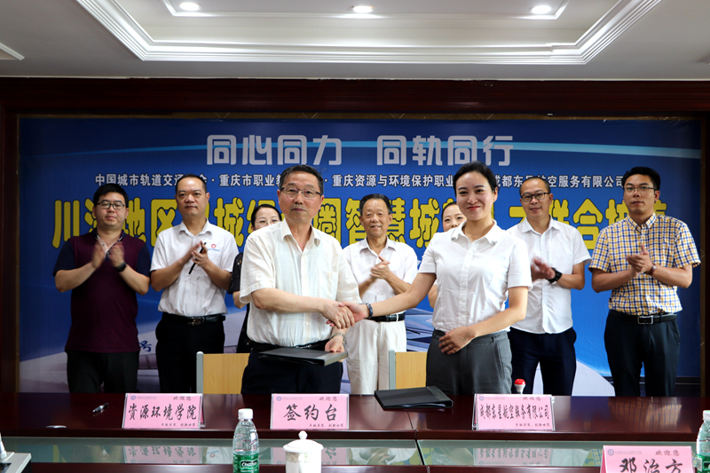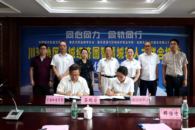 2020年6月12日,为全面落实成渝地区双城经济圈国家战略,我校积极调整专业发展布局,服务成渝经济产业发展,我校与成都东星航空服务有限公司、中国轨道交通协会、重庆市职业教育学会开展川渝地区双城经济圈智慧城轨人才联合培养,战略合作签约在我校举行。