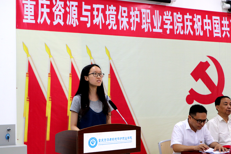 经济管理学院受表彰的优秀共产党员代表马小凤同志发言:“作为一名中共党员,我感到无比的自豪,从入党的那一刻起,从对党旗宣誓的那一刻起,我的生命已经烙上了红色的印记,对党的忠诚,对国家的的热爱,对人民的真诚大于一切”。她表示全体教师作出承诺:立德树人做贡献,争做四有好老师,树立新时代教师良好形象,做好模范带头作用。随后,入党积极分子代表梁秋焱发言,她的发言铿锵有力,掷地有声,抒发了对党的热情,以及真切的祝福。