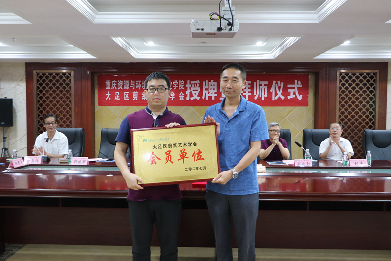 大足区剪纸艺术学会向我校授牌,我校正式成为大足区剪纸艺术学会会员单位。