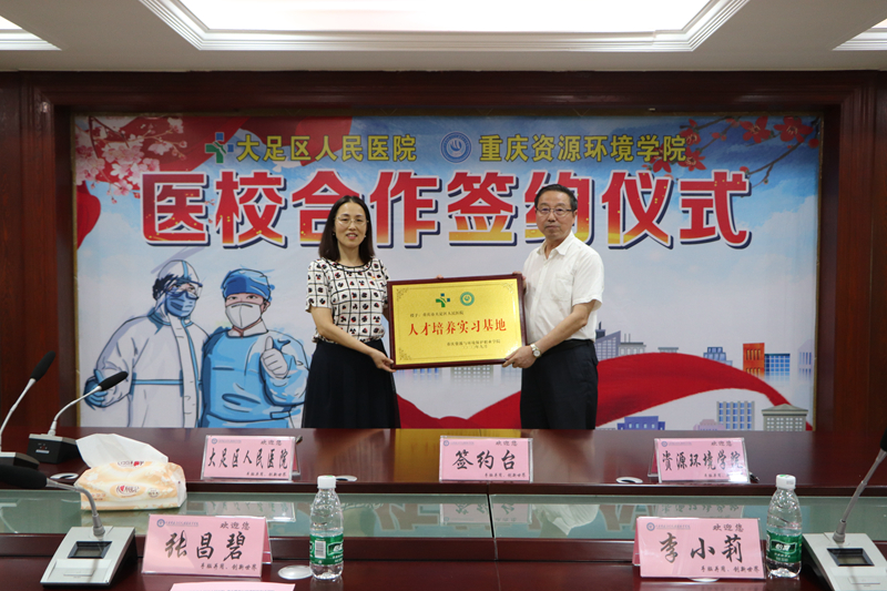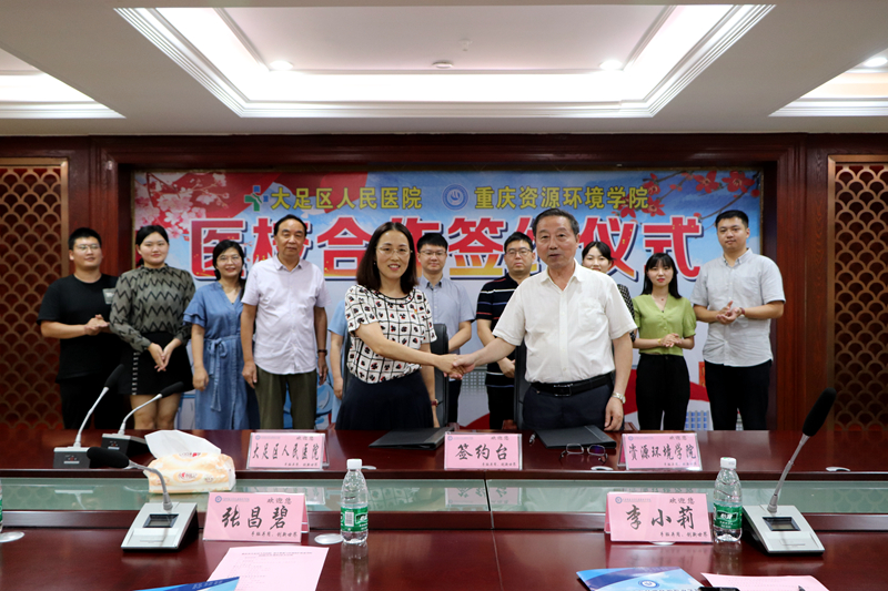 2020年9月2日上午,重庆资源与环境保护职业学院与重庆市大足区人民医院在办公楼三楼会议室举行医校合作签约仪式。出席仪式的有:重庆市大足区人民医院党委副书记兼院长李小莉、护理部主任张昌碧、科教科科长胡铁弋;资环学院校长黄耀五教授、副校长谈建设副教授、教务处处长郝位军副教授、院长助理谢琴及健康学院全体教师。