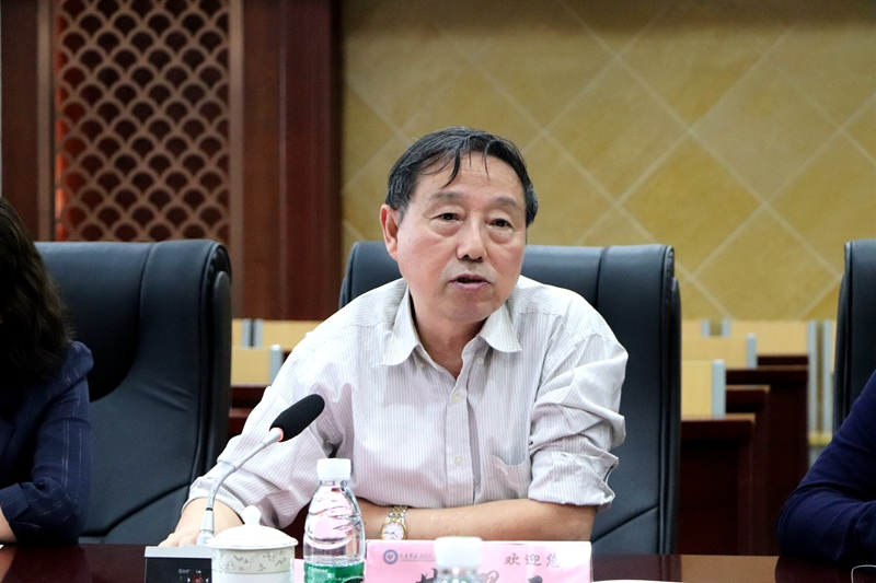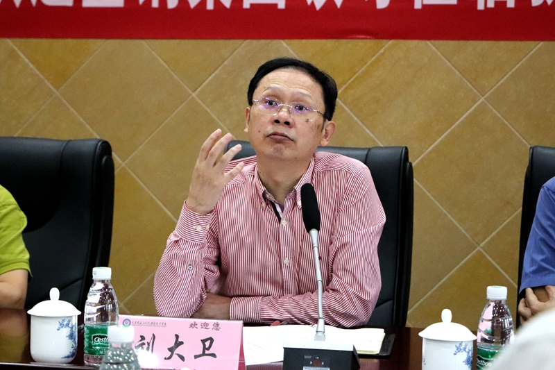 重庆钢铁集团董事长刘大卫讲话。他首先表示不虚此行,对学校的办学发展规模感到震撼;其次介绍重钢集团的发展历史;最后道出考察交流目的,希望能与我校达成合作。