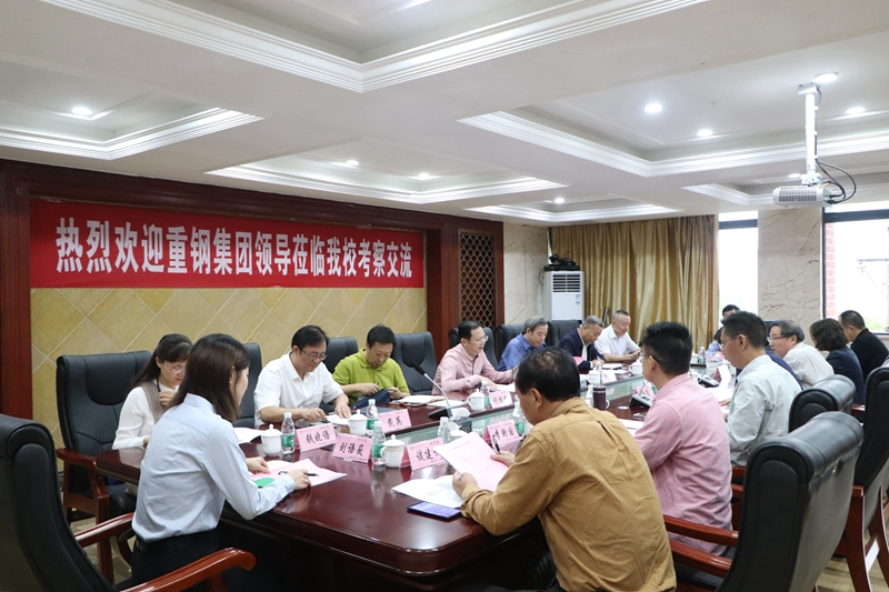 2020年9月16日上午9点,重庆钢铁集团来我校考察交流。我校领导带领重钢集团领导参观校园。从校门开始沿路参观学校至办公室三楼会议室。