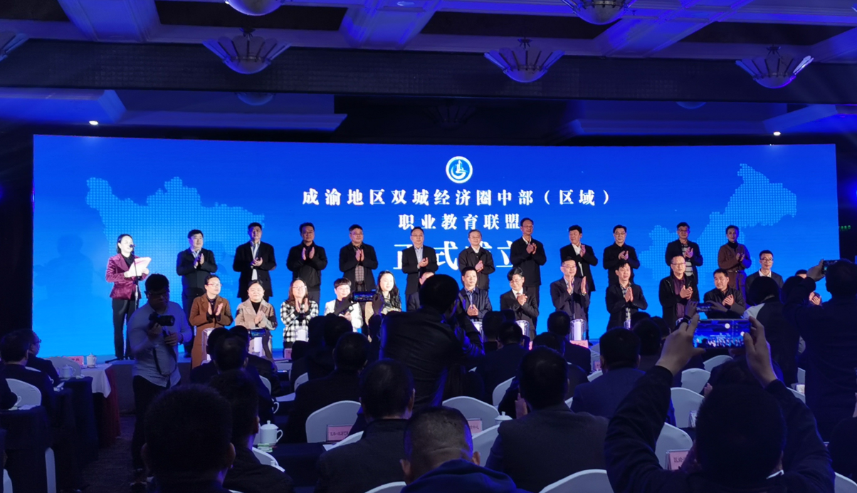 11月12日,成渝地区双城经济圈中部(区域)职业教育联盟成立大会在重庆市大足区举行。四川省教育厅、重庆市教育委员会、四川省职业教育与成人教育学会、重庆市教科院等嘉宾莅临现场,四川省泸州、遂宁、内江、眉山、资阳、都江堰6市教育(体)局和重庆市江津、永川、合川、璧山、铜梁、潼南、荣昌、大足8区教委相关领导出席会议,联盟市(区)县各中高职院校相关负责人以及产教融合企业代表200余人参加会议。重庆市大足区人民政府副区长周虹主持会议。重庆资源与环境保护职业学院校长黄耀五教授出席联盟成立大会并主持高校分会讨论。