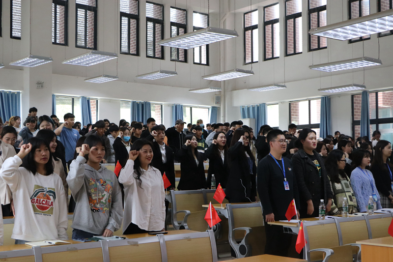 学习教育在全体成员起立合唱《共产主义接班人》中拉开了序幕。为厚植青年学生的爱国主义情怀,切实增强团员青年的政治意识、赋予新时代青年责任感和使命感,全体团员重温入团誓词,集体回望初心使命,重温当年的决心与信念。接着,学生会学习部代表符成东同学以“青春心向党 建功新时代”为主题做了发言,学生会主席杨国海领学了习总书记关于青年教育培养的重要论述。