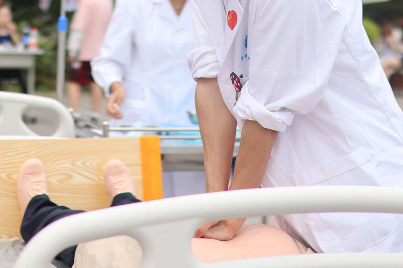 2008年的今天,中国四川省汶川发生8.0级大地震,此次地震造成数以万计的人员遇难,数十万人受伤。为表示对遇难同胞的深切悼念,活动伊始,我院组织全体师生向汶川遇难同胞默哀。接着,全体学生在学生会主席团成员带领下,肃然站立进行了庄严而圣神的护士宣誓,一句句铮铮誓言诠释着救死扶伤、医者仁心的大爱精神,一份份朴质承诺表达了他们对护理事业的无限憧憬和期待。宣誓结束,同学们紧锣密鼓地开展了“CPR”(心肺复苏)急救技能操作大赛,本次比赛由我校健康管理教研室专业课老师担任评委,30名学生参赛。“先生,先生,你怎么了?”、“意识丧失,无心跳呼吸,马上施行抢救......”参赛者一边呼救一边熟练地进行胸外心脏按压、除颤清除呼吸道异物、打开气道、呼吸囊使用......伴随着一幕幕惊心动魄的抢救画面,选手们很快进入急救状态,他们在“模拟人”面前呼救、评估、通气、按压......沉着冷静、动作娴熟。经过2个小时的激烈角逐,5名参赛选手脱颖而出,最终由张才才获得一等奖,王围获得二等奖,邹佳芮、符成东、田露获得三等奖。