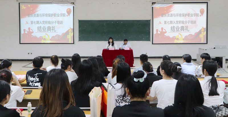 2021年5月17日晚,重庆资源与环境保护职业学院在教学楼J112举行第七期入党积极分子培训班结业典礼,学校组织部干事曹春梅主持结业典礼,党委委员、组织部部长出席典礼并讲话。