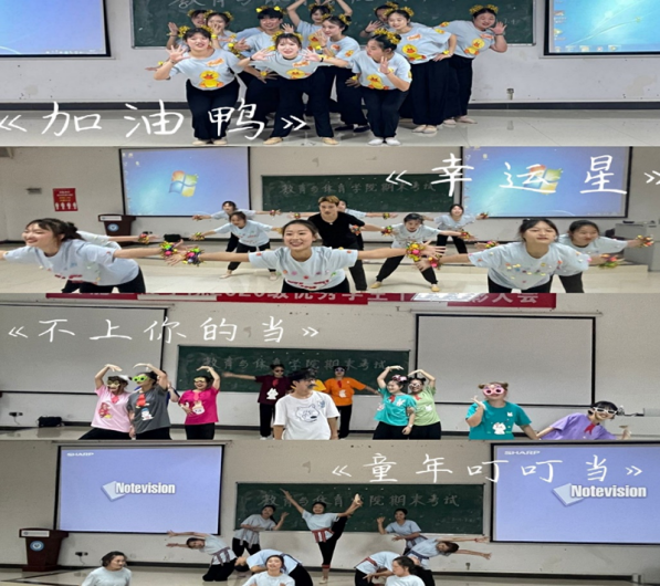 为丰富大学生课余生活,提高大学生的综合素质,增强团队精神和凝聚力,展现学生们的编创能力。2021年7月4日晚,我院舞蹈课程考核在教学楼J112拉开了序幕。