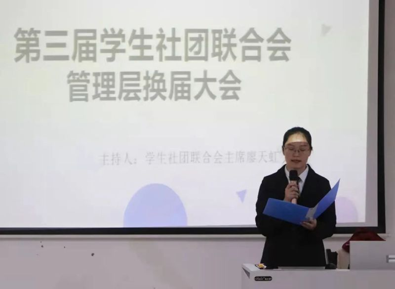 大会由第三届学生社团管理工作部部长廖天虹同学主持