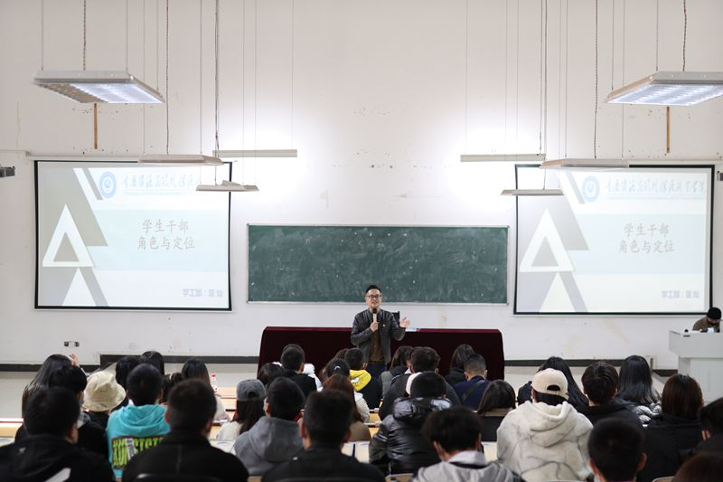 为加强学生干部队伍思想建设,提高学生干部综合素质,11月10日中午,我校在教学楼j112教室举行2021-2022学年度学生干部培训大会。学工部部长匡灿以学生干部的角色和定位为切入点深入浅出的为学校各级学生组织讲解学生干部的能力素质和工作方法。会议由团委书记张斌主持。